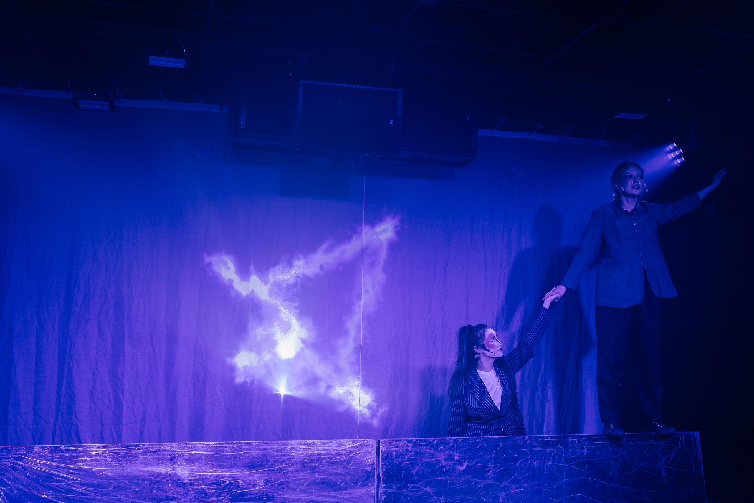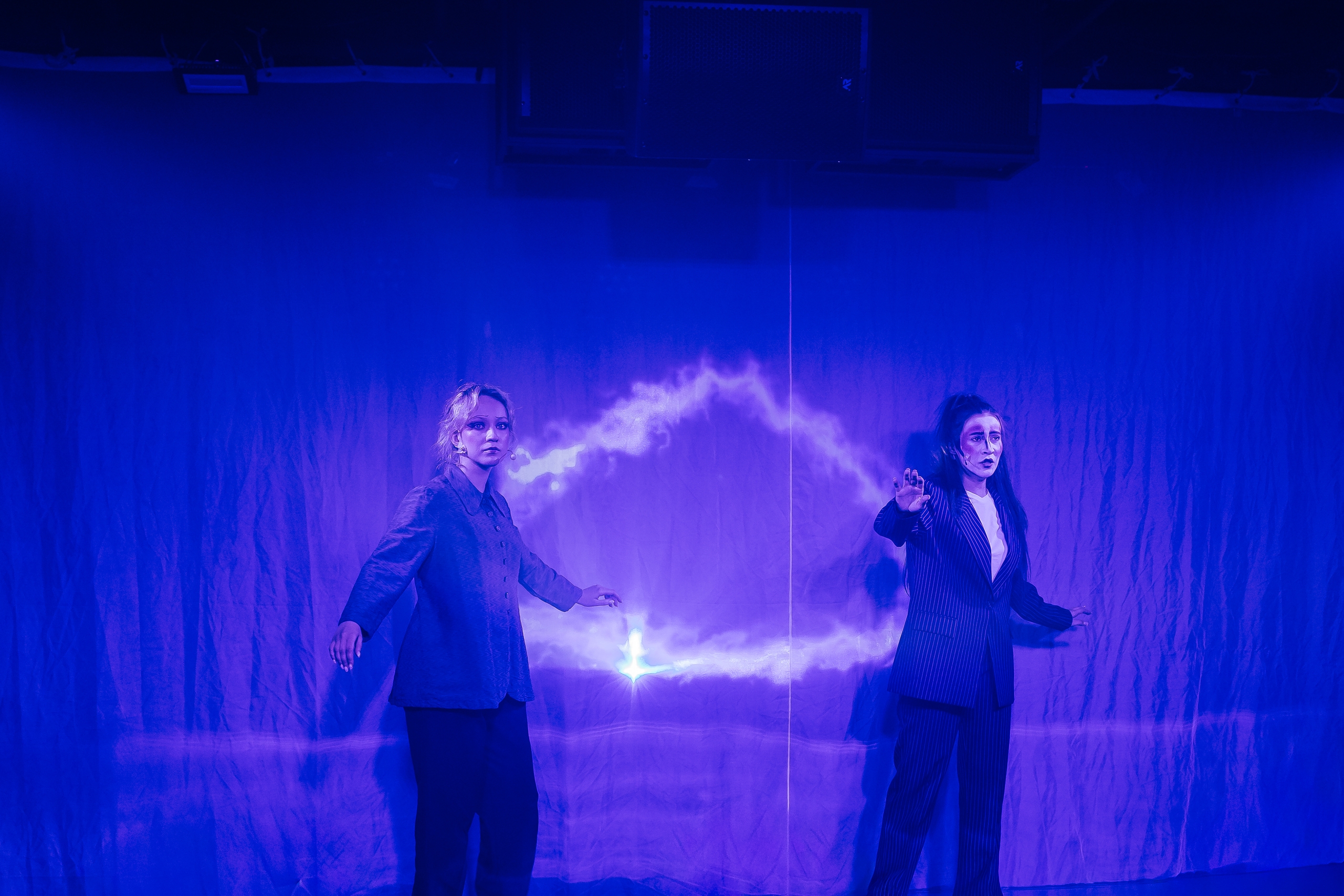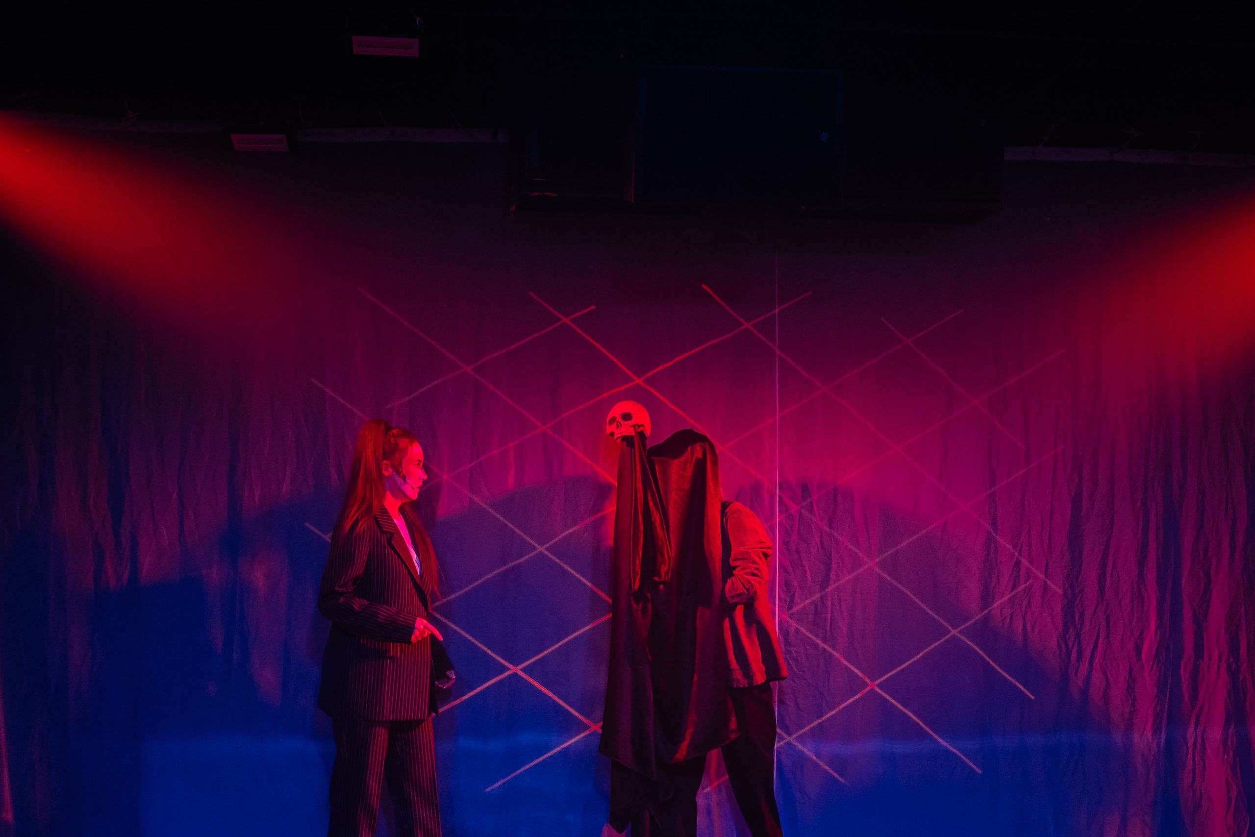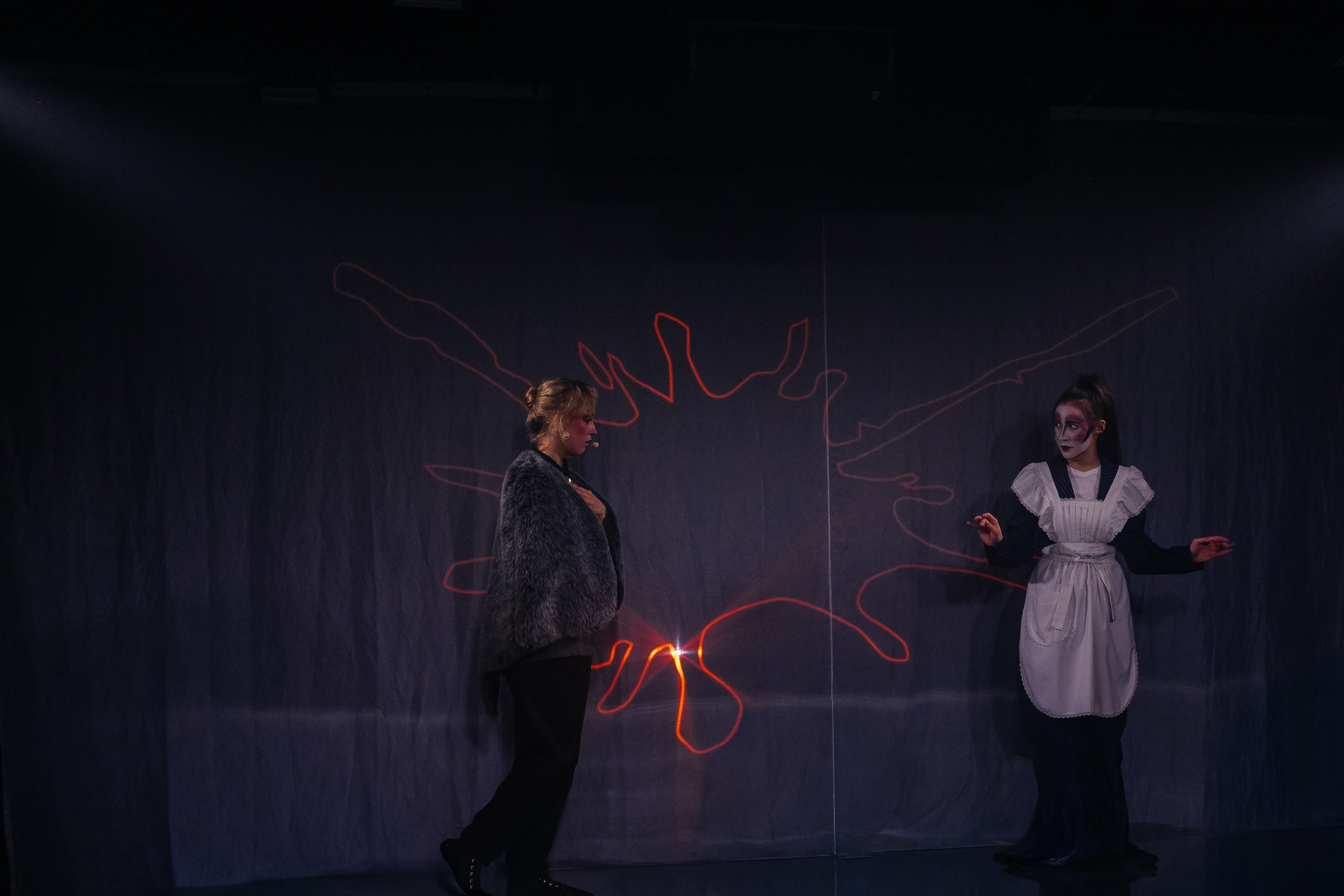 Сценический свет, яркость актёрской игры и рисунки лазером прямо на ваших глазах, создают разнообразие визуальных картин, особенную атмосферу волшебства и, как лакмусовая бумажка проявляют сущность каждого члена семьи, помогая понять, «что такое жизнь, смерть, и почему любовь сильнее смерти».