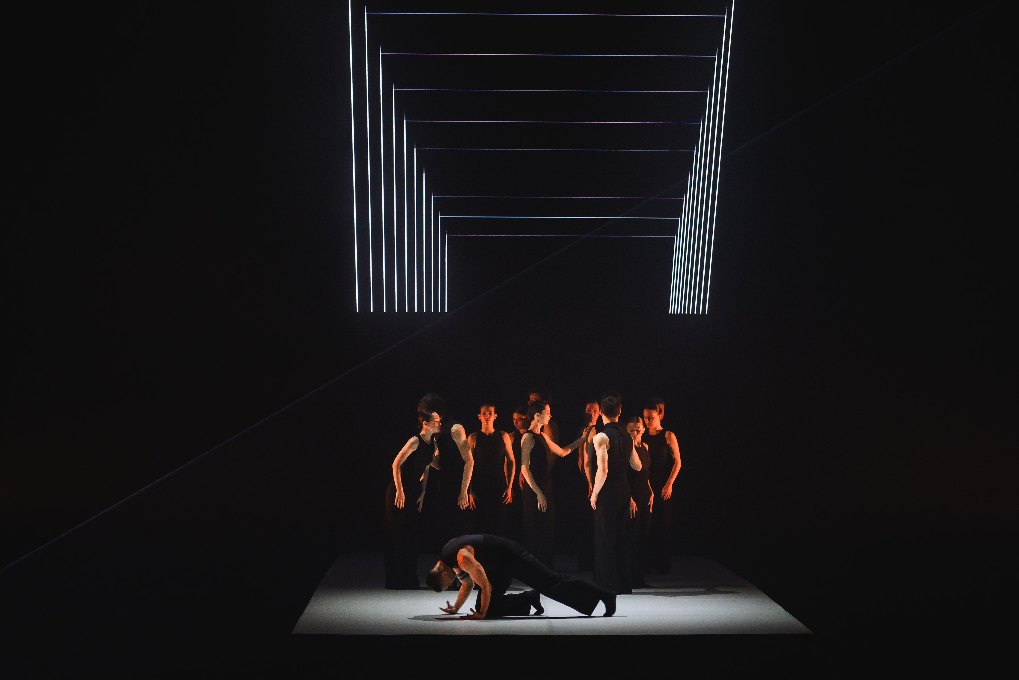 Тринадцать танцовщиков стояли на краю света, там, где сцена встречается с бездной. Каждый в своем квадрате.
