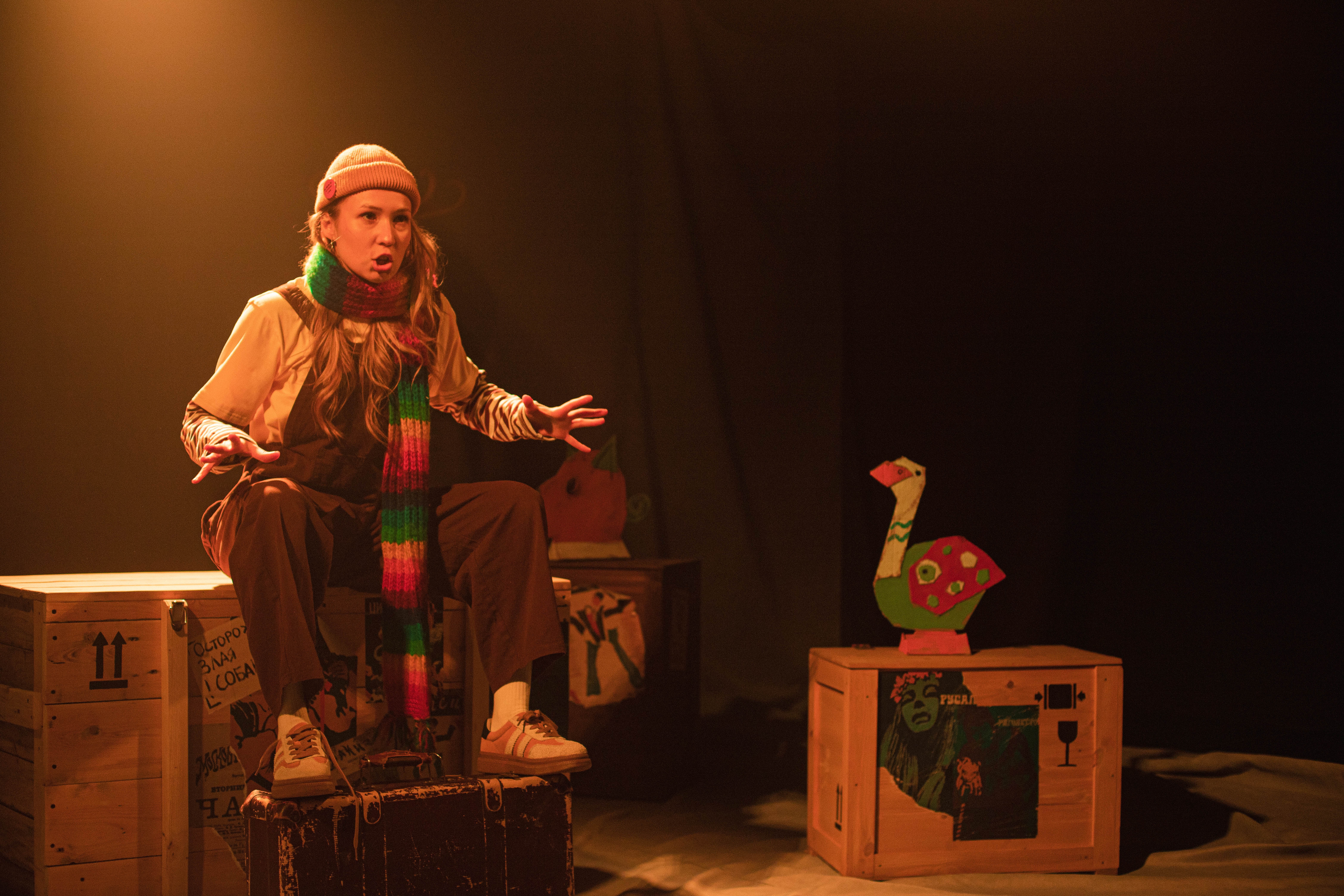 На сцене одна актриса. Она живо и трогательно вживается в образ, погружая нас в глубины переживаний и чувств двух существ, таких похожих и таких разных. В течение спектакля зрители становятся свидетелями того, как Каштанка сливается с актрисой, и границы между монологом животного и человеком стираются.