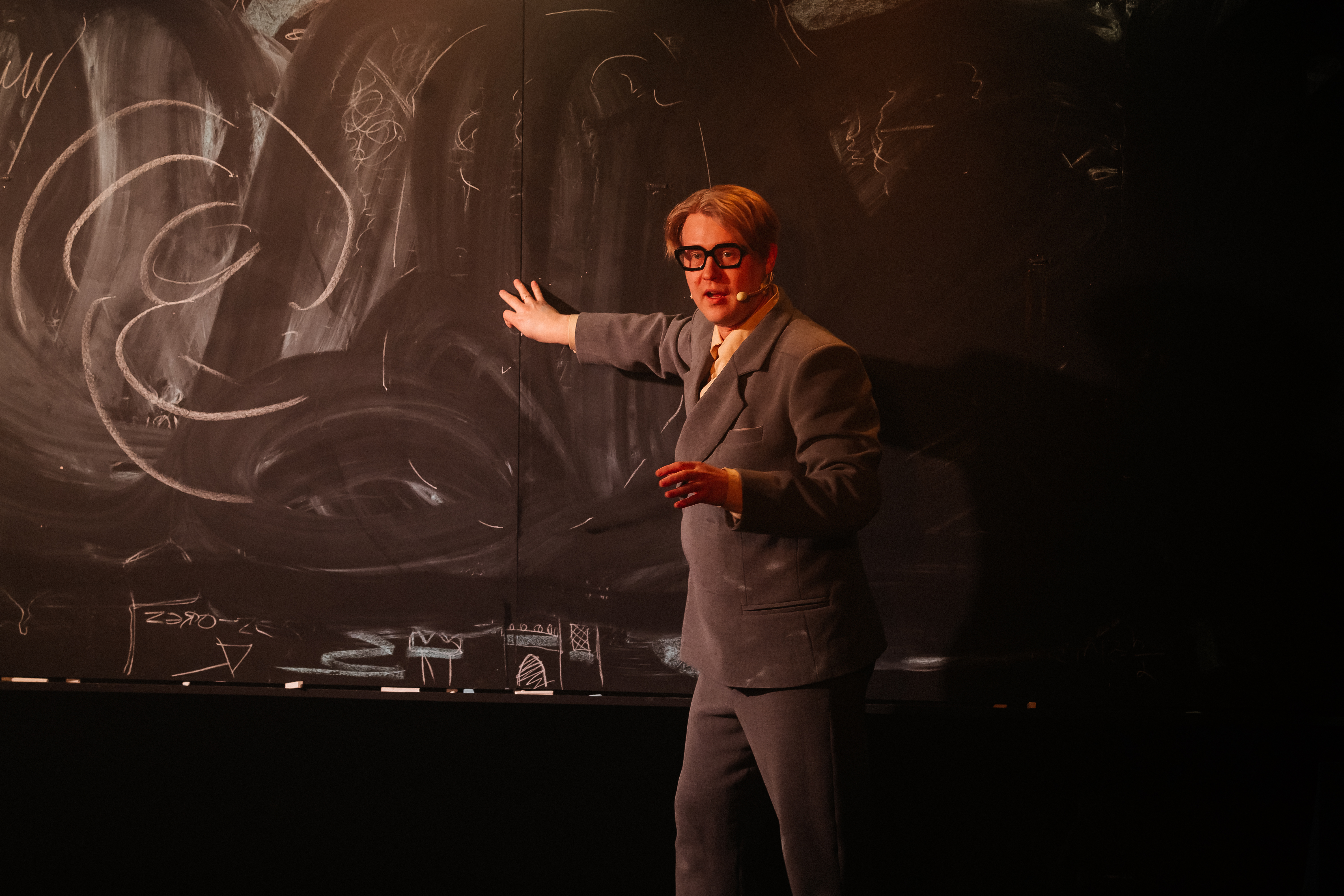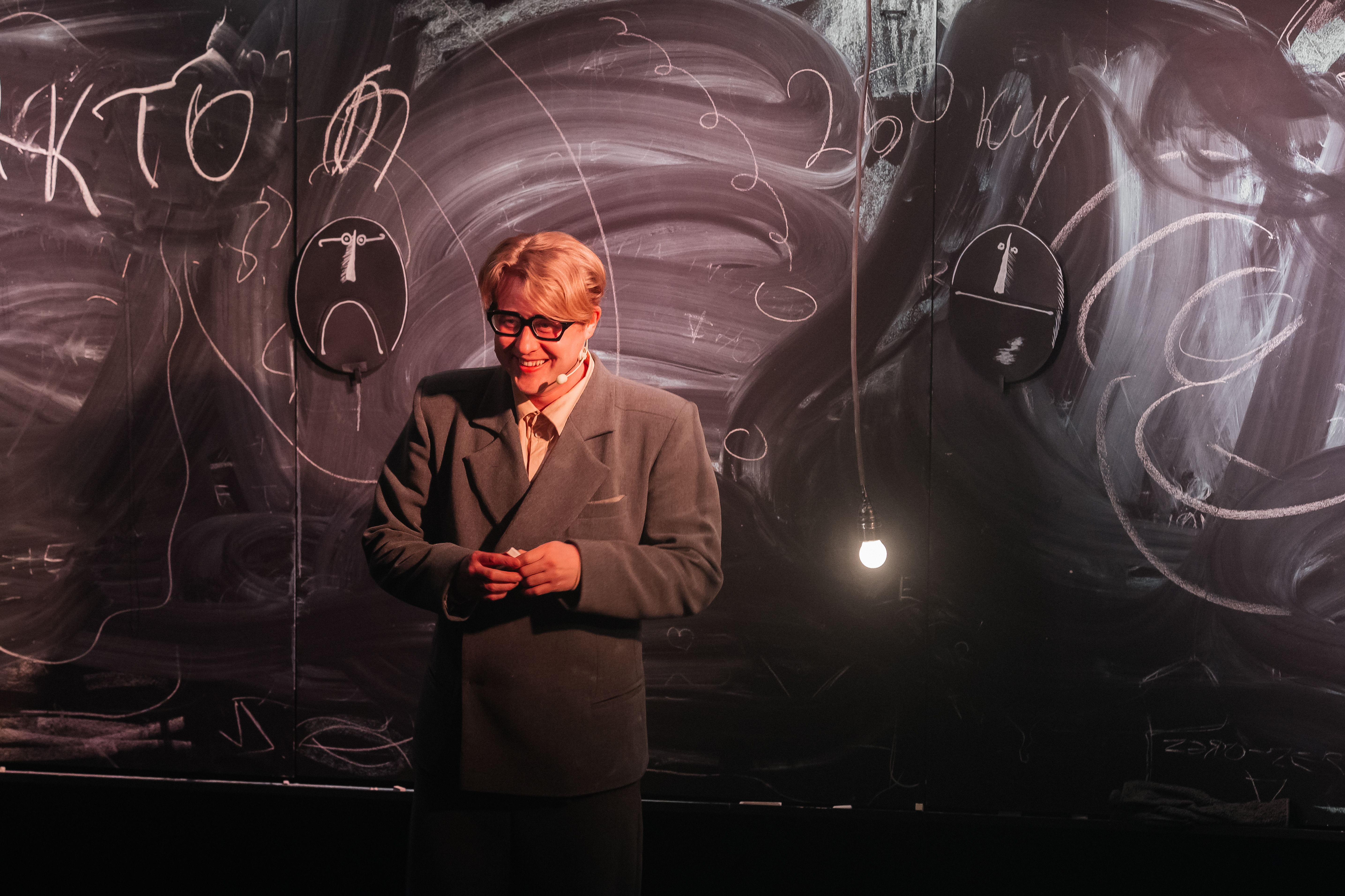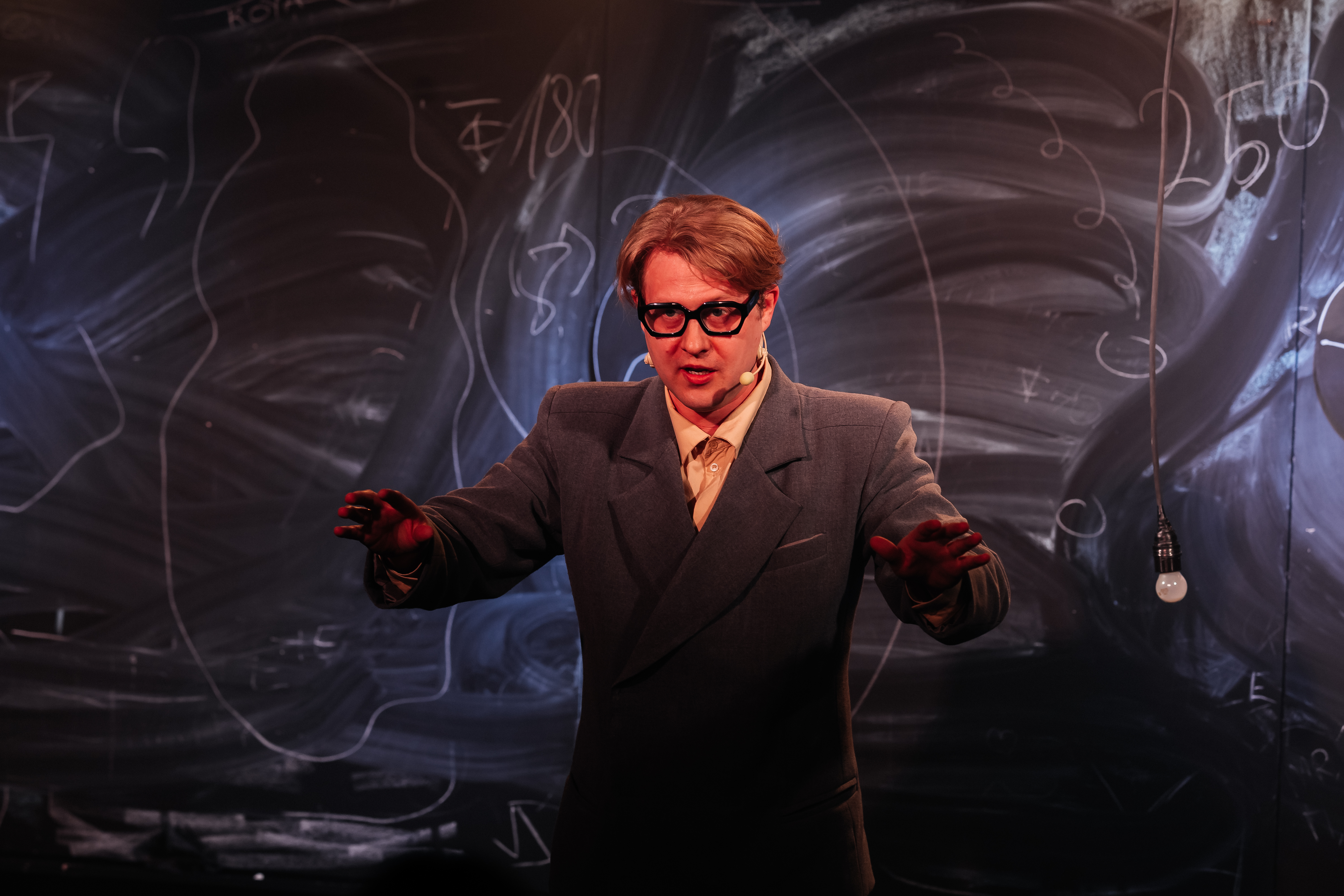 Этот спектакль – и биография, и научная лекция одновременно. На сцене – один актёр и простые предметы: доска и мел. Из них рождаются галактика и детство, юмор и любовь, болезнь и бесконечность. Театр предмета превращает научные идеи в игру, а биографию учёного – в путешествие по границам сознания. Это спектакль о человеке с большой буквы. О том, что формулы E=mc² достаточно, чтобы узнать откуда всё началось.