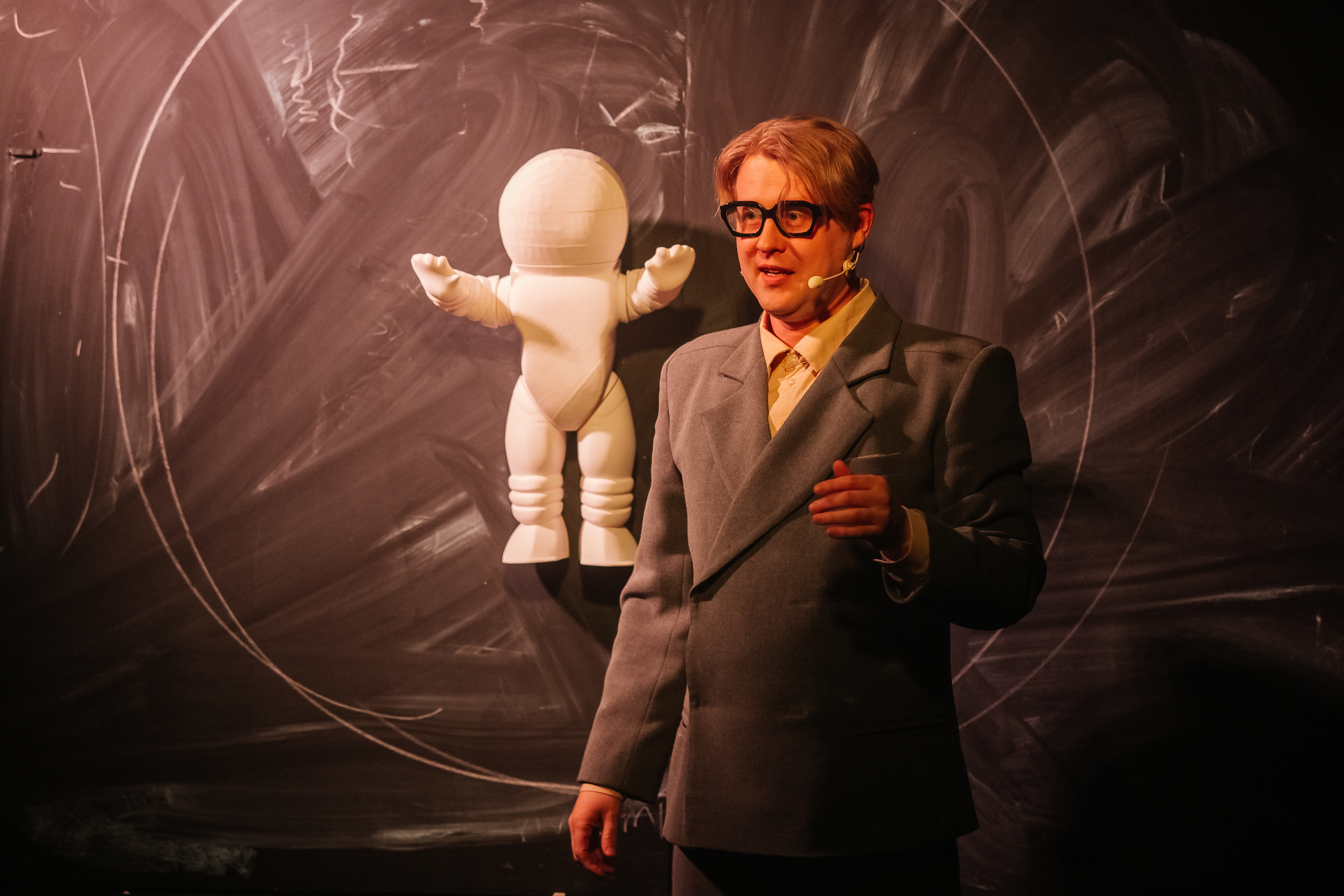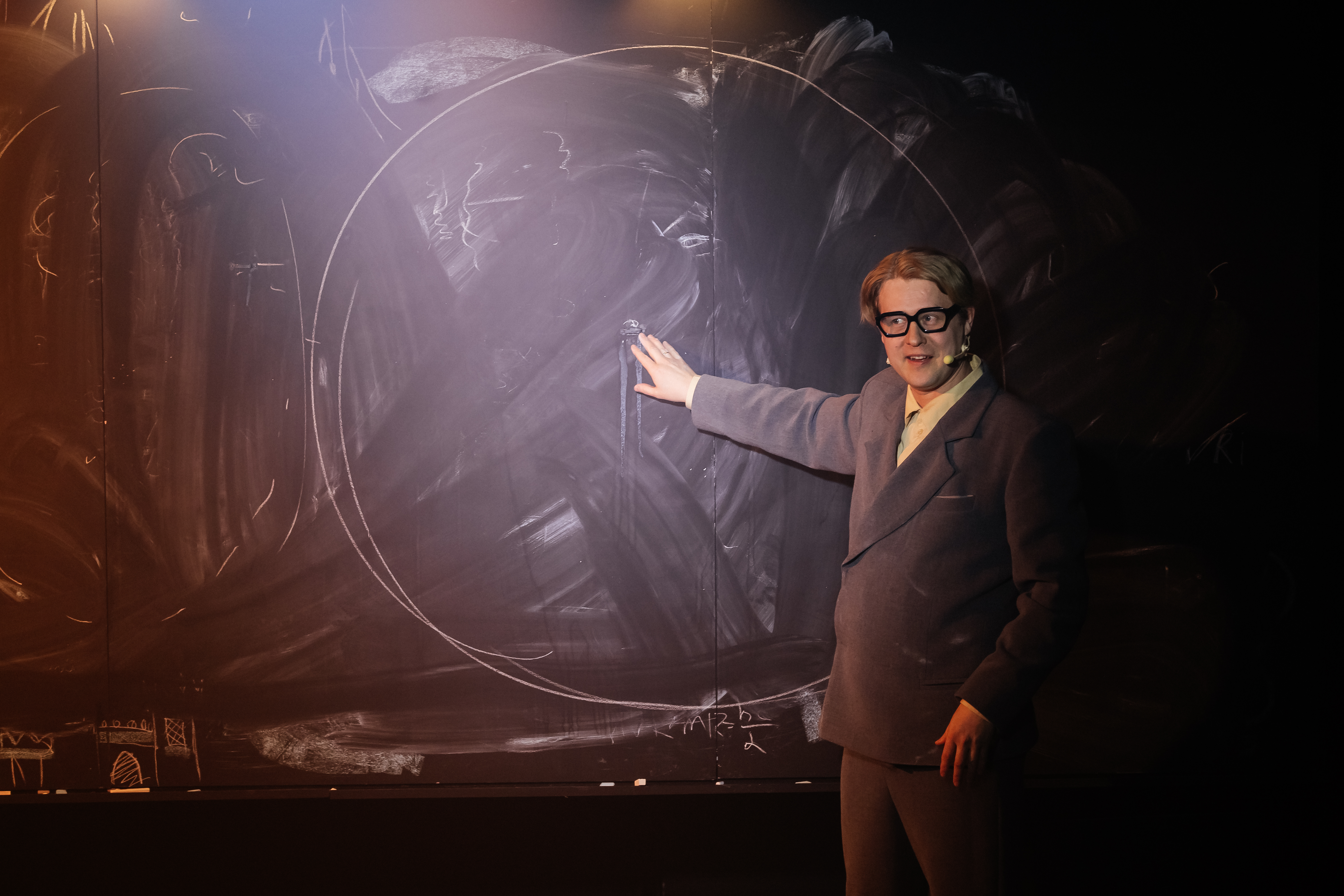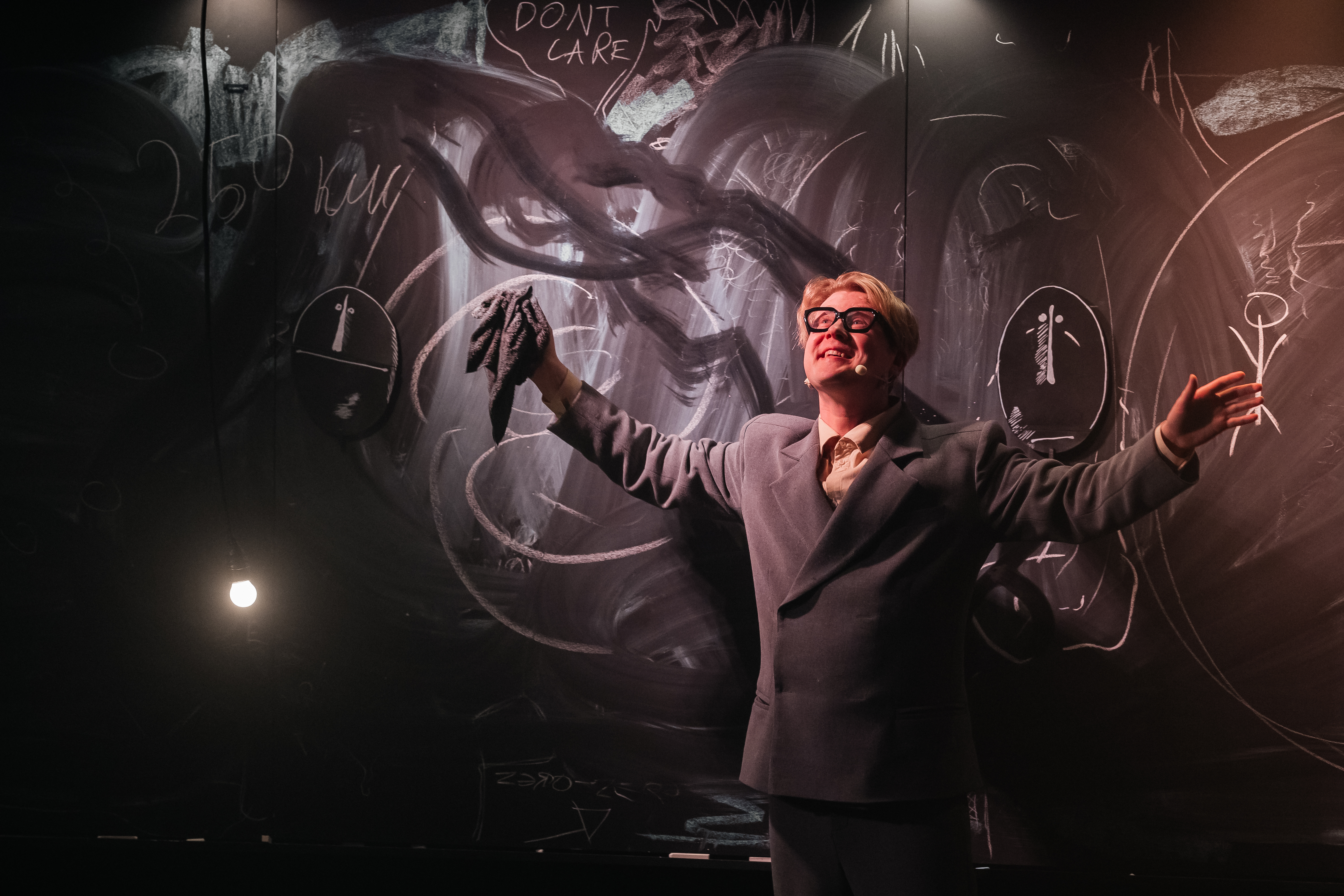 Этот спектакль – и биография, и научная лекция одновременно. На сцене – один актёр и простые предметы: доска и мел. Из них рождаются галактика и детство, юмор и любовь, болезнь и бесконечность. Театр предмета превращает научные идеи в игру, а биографию учёного – в путешествие по границам сознания. Это спектакль о человеке с большой буквы. О том, что формулы E=mc² достаточно, чтобы узнать откуда всё началось.
