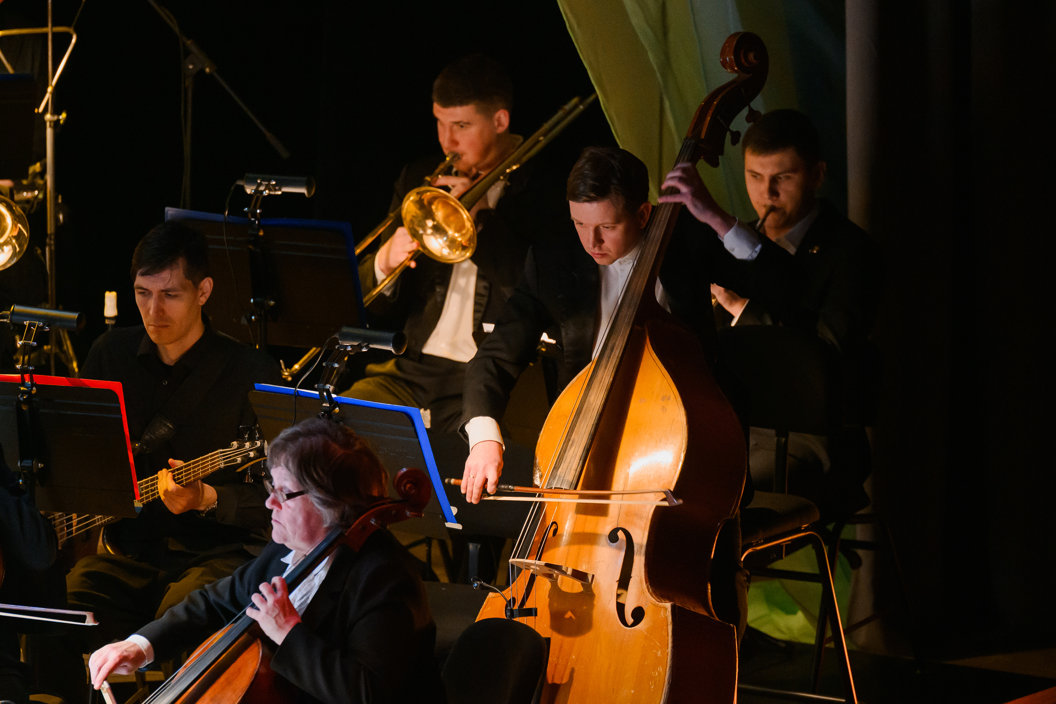 - Разглядеть каждый музыкальный инструмент на сцене